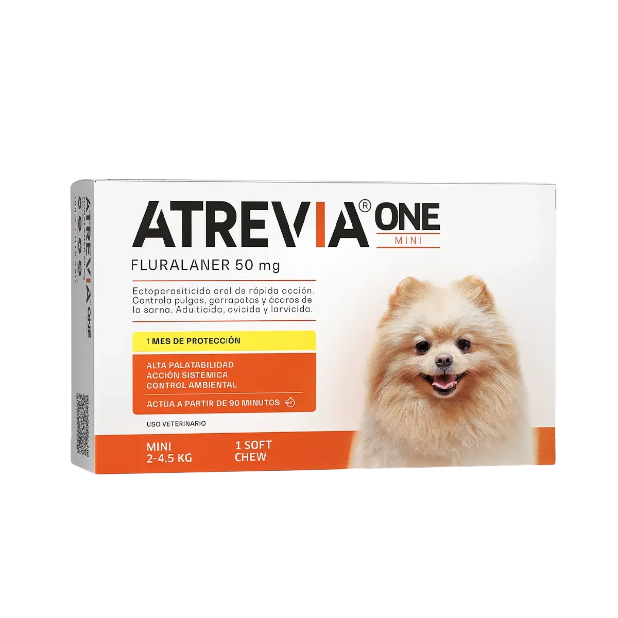 Atrevia One es un antiparasitario oral de administración mensual para perros, formulado con Fluralaner, una isoxazolina que actúa de forma sistémica contra pulgas y garrapatas.